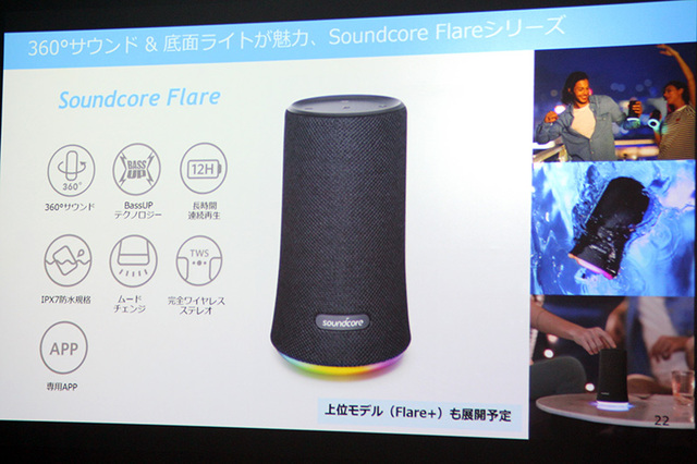 ■主力機種はライティング調整も可能な「Soundcore Flare」