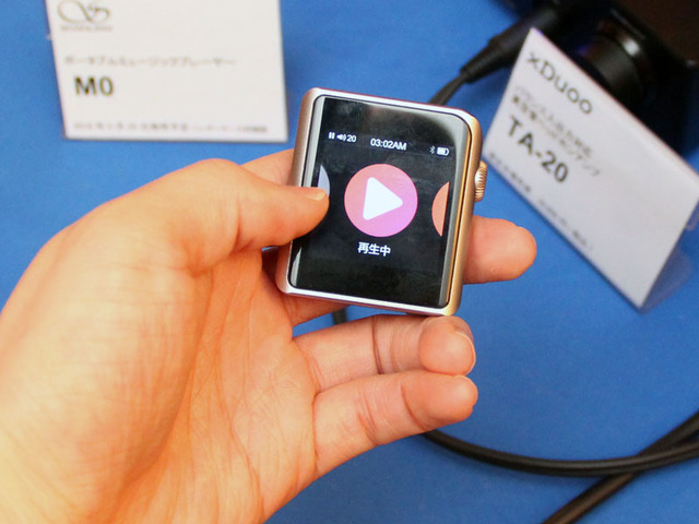 伊藤屋国際のブースでは、SHANLINGの手のひらに収まる小型ハイレゾプレーヤー「M0」をイベント初出展したいた。従来機「M1」から38%の小型化を実現し、本体サイズは40W×45H×1.35Dmm、質量はわずか38g。コンパクトだが、最大でPCM 384kHz/24bitまでをサポートし、DSD 64までのネイティブ再生にも対応する。
