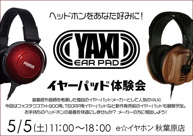 (有)中央工営 YAXI事業部は、同社のイヤーパッド製品体験会を、e☆イヤホン秋葉原店にて5月5日(土)11:00から18:00に開催する。