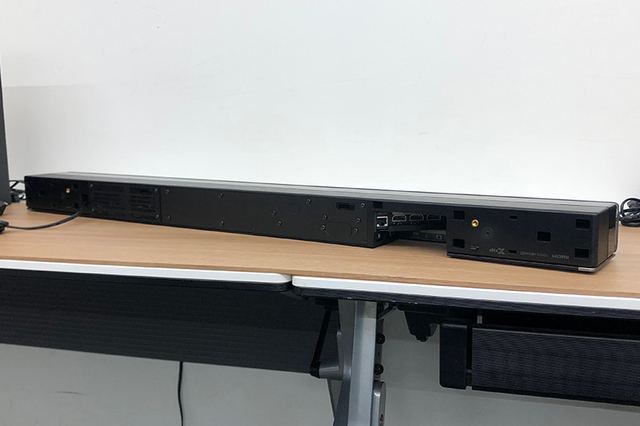 スピーカーは2.1ch構成を採用。ニュース番組などではセリフをリフトアップするなど実用面を考慮したチューニングを施したという。出力は300Wで、HDMI入出力は各1基ずつ装備する。本機も光デジタル入力、アナログ入力、USB Type-A端子、LAN端子なども1基ずつ装備。Bluetoothは同じくVer.4.2を搭載、対応コーデックはSBC/AACのみ。