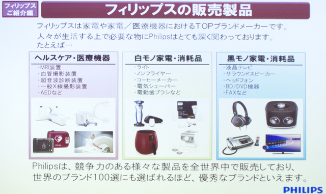 同社日本事務所の川口氏は、「日本においてフィリップスといえば、シェーバーや電動歯ブラシ、白物家電メーカーとしてのイメージを強く持たれているが、本来はテレビなど黒物家電やCDなどのメディア、MRI装置のような医療機器まで手がける総合ブランドだ」と説明。液晶ディスプレイの分野においても、ディスプレイ単体販売では世界4位のシェアを誇り、日本国内においても2017年には36万台を超える販売実績を残してシェア第2位を築いていると説明した。