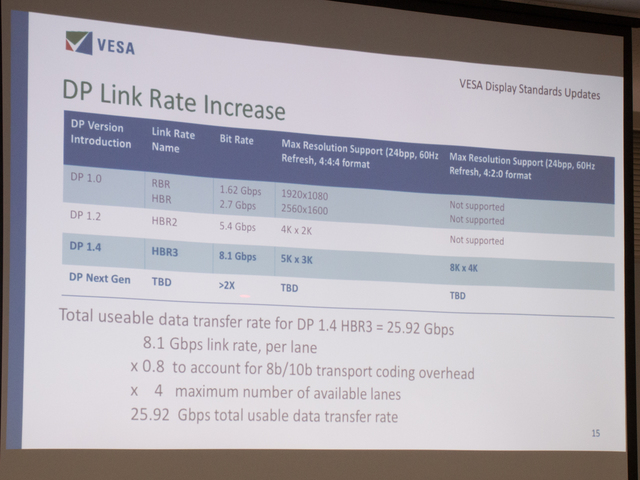 「転送レート2倍の次世代DisplayPortを開発中」。VESAが現況と展望を報告