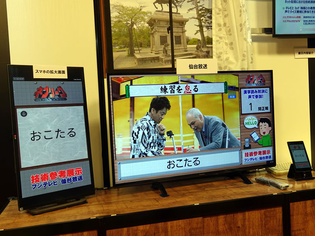 IoTデバイスとの連携はフジテレビ/仙台放送も展示。音声認識技術を使い、声でクイズ番組参加できる音声参加型番組のデモを行っていた。