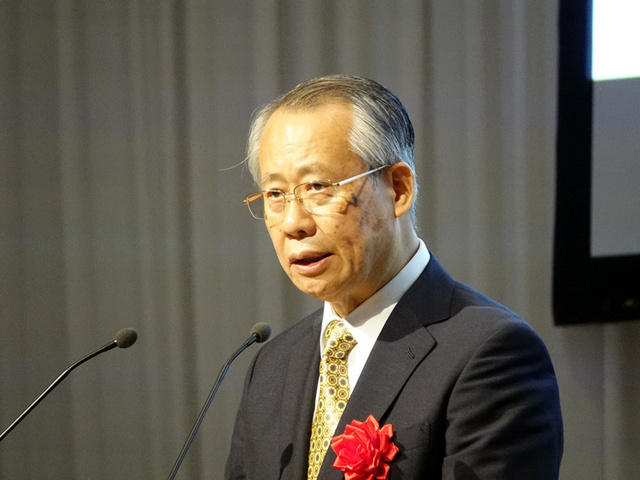 野田大臣に続いては、NHKの上田良一会長、民放連の井上弘会長、JEITAの安木成次郎氏があいさつ。NHKの上田会長は12月1日にイタリアからの8K生中継を行うことや4Kでは南極からの中継を行うことなどを紹介しながら、「普及拡大は魅力的なコンテンツをどれだけ充実させられるかがカギだ。超一流のコンテンツを用意する」と意気込みを語る。