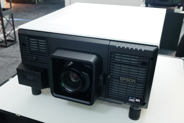 「EB-L12000Q」はネイティブ4K(3,840×2,160)パネルを、エプソンとして初めて搭載。3LCD方式の高い色再現性と精細感を実現するとしている。明るさは12,000ルーメン、コントラスト比は2,500,000:1。内部の冷却システム構造を抜本的に見直したことにより、他社製の同程度のスペックを持つプロジェクターに対し、非常にコンパクトな筐体サイズを実現したとする。