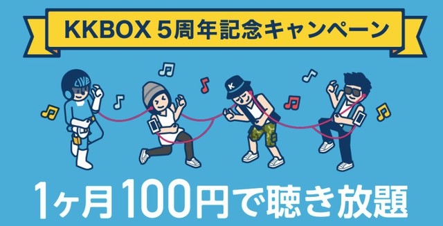 日本でのサービス開始5周年を記念したキャンペーン。期間中にKKBOXにGoogle Play決済/Apple決済で新規登録すると、プレミアムプランを100円で3ヶ月間利用できる。
