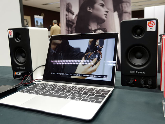 ローランドは、パワードスピーカー「MA-22」やハイレゾ対応オーディオレコーダー「R-07」などローランドブランドの製品に加えて、V-MODAのヘッドホン「CROSSFADE2 WIRELESS」も展示。少し変わったところではバイノーラル録音が行えるイヤホン一体型コンデンサーマイク「CS-10EM」の展示も行っている。