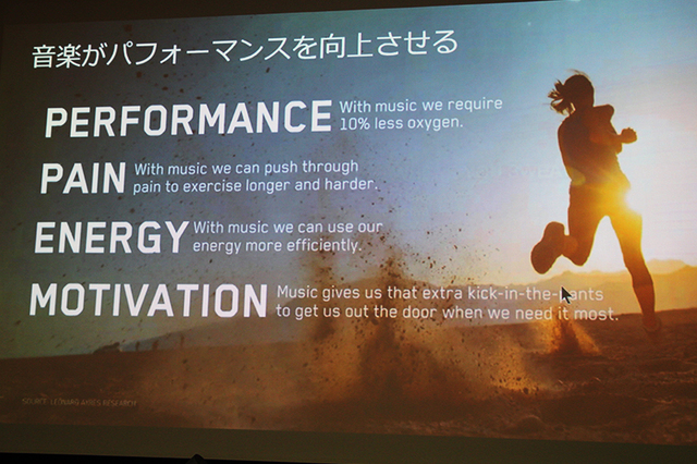 またJaybirdでは、スポーツの中でも「ランニング」にフォーカスしているとのこと。「走る行為をする人=ランナーと定義していて、日常で運動の一つとして走る人も含まれる。また、多くのスポーツ選手が基礎トレーニングとして費やす行為でもある。広義で捉えると世界で一番人口の多いスポーツと考えている」とし、イヤホン市場以外にもランニング市場も一つのターゲットと捉えていると語る。
