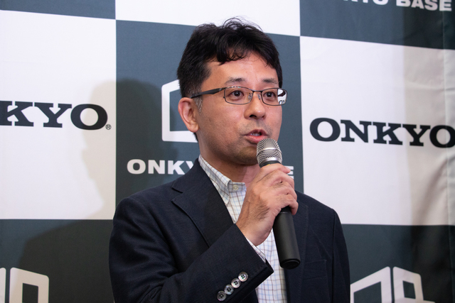 発表会では、オンキヨー株式会社の執行役員 奥村暢章氏がONKYO BASEのコンセプトや概要について説明を行った。