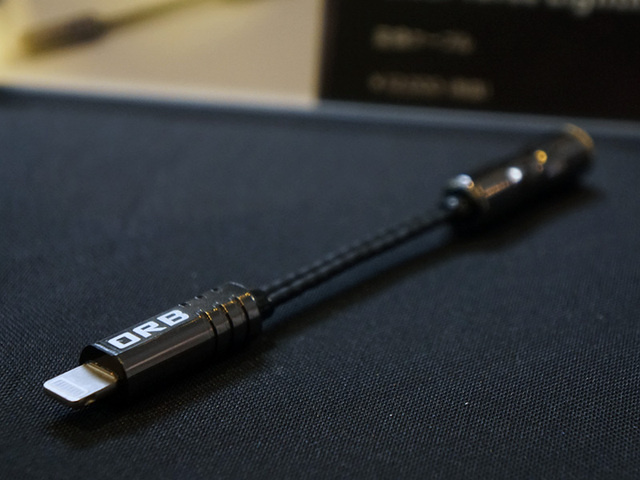ORBは、先日発表した(関連ニュース)オーディオグレードの線材やパーツによるLightning - 3.5mm変換ケーブル「Clear force Lightning-3.5φ」を展示。7月20日の発売に先駆けて製品を体験および先行購入できるようにしていた。