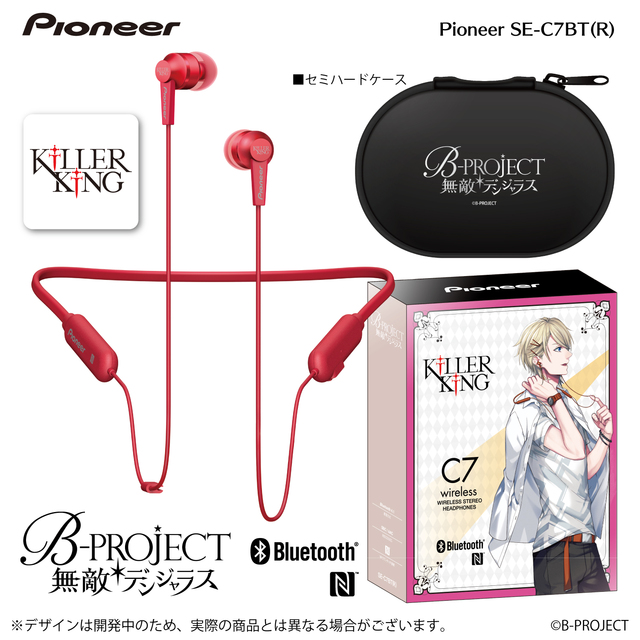 オンキヨーは、パイオニアブランドのBluetoothイヤホン “C7wireless” 「SE-C7BT」と、リズム&アドベンチャーゲーム『B-PROJECT 無敵*デンジャラス』とのコラボレーションモデルを、同社直販サイトONKYO DIRECTで予約販売する。予約期間は7月11日15:00から2018年9月10日(月)15:00まで、価格は10,000円(税・送料込)。製品の発送は11月初旬より順次行われる予定。