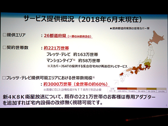 本サービスでの新4K8K衛星放送は、現在のフレッツ・テレビの提供エリアと同じ地域で視聴可能。現在、フレッツ・テレビは26都道府県で提供している。