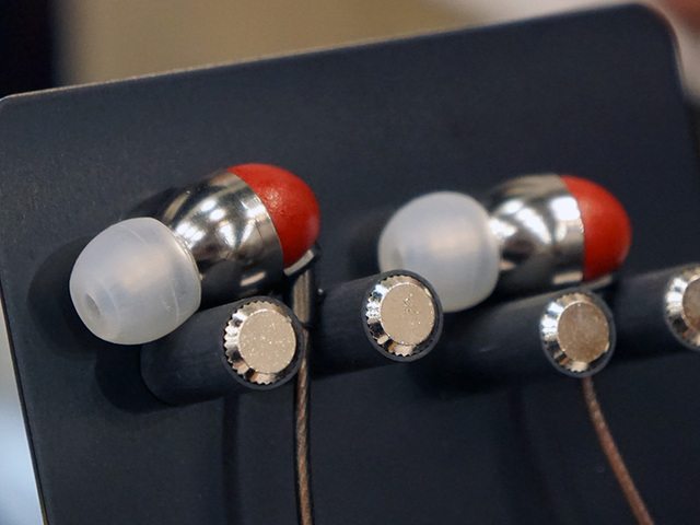 また、ノズル部を交換することで音色を調整できる“CLASS-S”のハイレゾイヤホン「SOLIDEGE inner」の展示では、製品に付属するものとは異なる3種類のノズルの試作品を参考出展。
