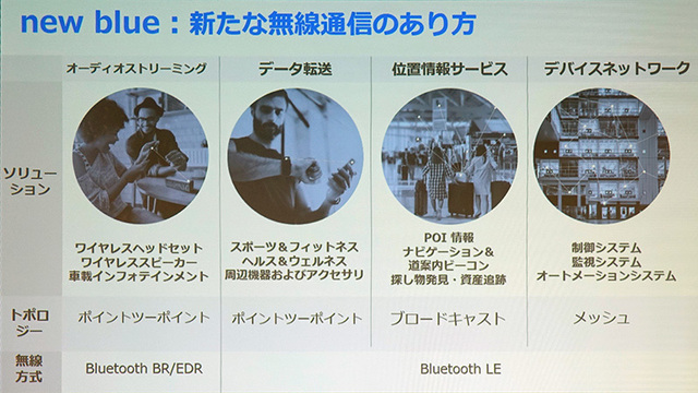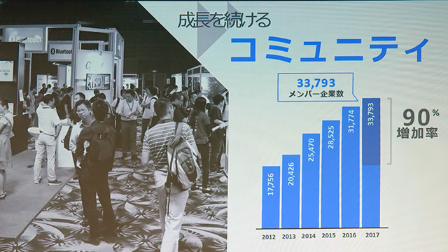 そして、2017年に正式ローンチしたBluetooth meshなどによって、スマートホームやスマートシティ、工場の自動化や制御といったスマートインダストリーなどの新しい領域でも今後ますますBluetooth活用が広がるだろうとアピール。「今後はより“ソリューション”にフォーカスしていく」とし、「Bluetoothがこうした“新興市場”でどのような役割を果たせるかを我々は考えている」と述べた。