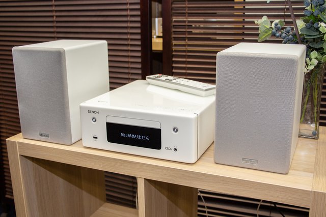 本体前面にCDドライブを搭載しており、音楽CDの再生に対応。MP3/WMAを保存したデータディスクも再生できる。CDドライブにはデノンのHi-Fiオーディオ技術が活用されており、低重心ドライブメカ搭載によりディスクの信号を高精度に読み取ることができるという。