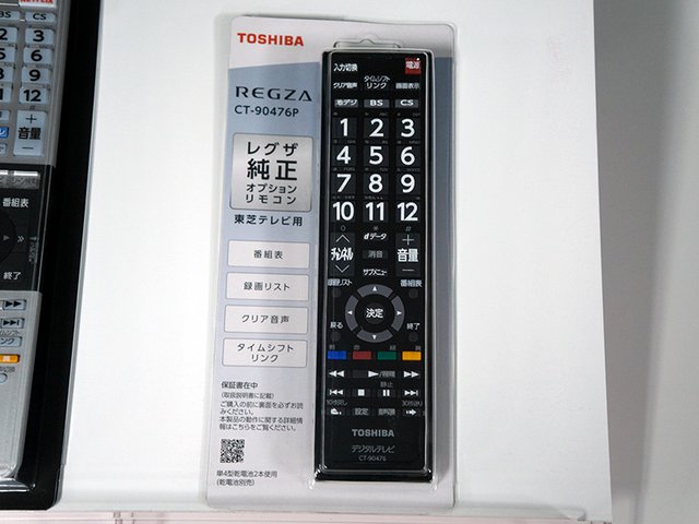 東芝は、同社製テレビ “REGZA” (レグザ)の操作ができる純正オプションリモコン「CT-90476P」を10月下旬から発売する。オープン価格だが3,000円前後での実売が予想される。