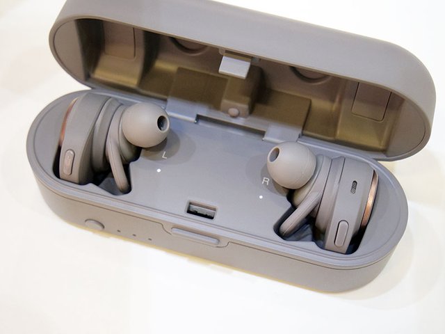 「ATH-SPORT7TW」はモデル名のとおり、スポーツ向けの完全ワイヤレスイヤホン。欧州では年内をめどに、199ユーロ前後で発売する。本体色はブラックとグレー。