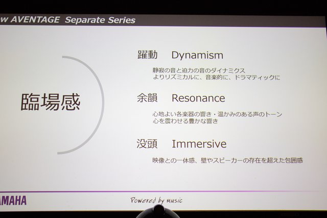 また、小林氏は上で挙げた「没頭(イマーシブ)」について言及。アトモス登場以降、イマーシブという言葉がオーディオ用語のようになっているが、ヤマハはそれ以前からイマーシブ(没入感)を掲げ、一貫してこれを追求してきたと強調した。