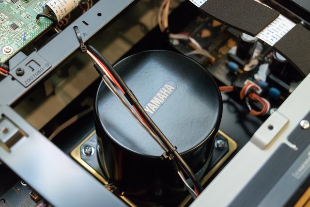 シャーシについては、引き続きH型クロスフレームおよびダブルボトム構造を採用。「理想の機械的強度を発揮させ、制振性・高剛性を高めた」という。そのほかにも、設置安定性を高めつつ、筐体の共振を効果的に分散させる「5番目の足」、アルミ製サイドパネルなど、ヤマハがAVアンプやオーディオ製品で培ってきた筐体設計技術を随所に盛り込んでいる。