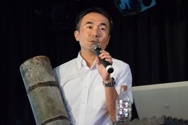 9月5日にデノンは発表会を開催した。発表会では本製品の開発を手がけたディーアンドエムの竹野勝義氏、孟宗竹ハウジングの製造を手がけたミロクの山本敦氏が登場。ヘッドホンの詳細について説明を行った。
