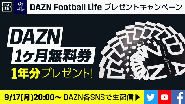 UEFAチャンピオンズリーグの独占配信を記念してYouTube、Twitter、Facebookにて無料配信する特別番組『DAZN FOOTBALL LIFE We Love UCL』を視聴した上で、DAZNのTwitterアカウントで出題されているクイズに回答すると抽選でプレゼントが当たるキャンペーン。
