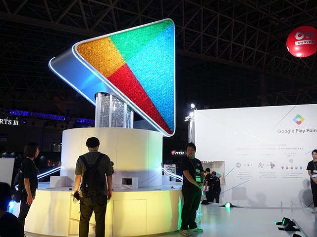 少し変わったところでは、グーグルが独自ポイントプログラム「Google Play Points」(関連ニュース)のブースを大きく展開。広いゲームショウ会場の各地にいくつか点在するチェックポイントでQRコードをスキャンすると会場限定ポイントが貯まり、そのポイントでPRブースの巨大な“リアルガチャ”を回して景品がゲットできるという企画を展開している。