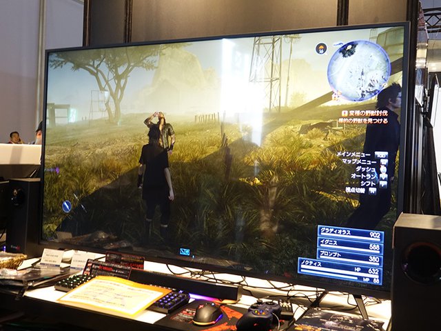 「LCD-M4K651XDB」は、4K/60Hz、HDCP2.2対応のHDMI端子を装備するなど、発売中の55型モデル「LCD-M4K551XDB」をさらに大型化させたようなモデルで、今冬に198,000円前後での発売を予定しているとのこと。会場ではこの大型4KディスプレイでFINAL FANTASY XVを試遊できるようになっていた。