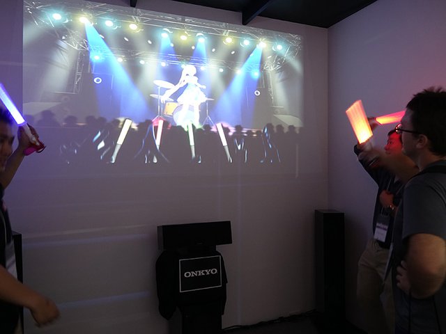 AVファンに馴染みの深いメーカーでは、オンキヨーが専門学校バンタンに技術協力という形で出展。バンタンが制作したバーチャルキャラクター「音郷音(おと さとね)ちゃん」のゲームを、オンキヨーのホームシアターシステムを通して体験することができる。