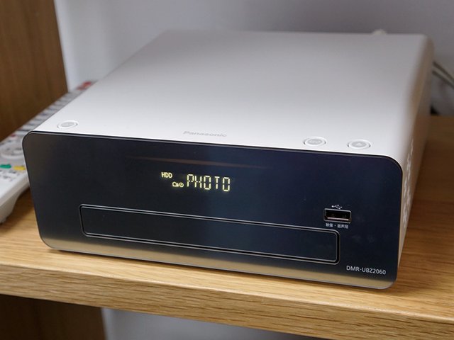 デザインを一般的なレコーダーから一新。横幅を2017年モデル「DMR-UBZ2030」の435mmから215mmと約半分に変更。棚の幅が330〜390mm程度が主流であるユニットシェルフなどにも設置できるようにした。