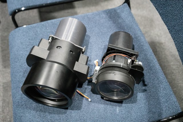 VW555は、1,800mlのランプを搭載したスタンダードモデル。レンズはVW745と同様のプラスチックレンズ1枚+ガラスレンズ13枚の構成。プラスチックレンズを使用しているのは重量を抑えるためとのことで、画質は構成差によるものと説明している。垂直+0.85V/-0.80V、水平±31%まで可能な広域レンズシフトにも対応した。