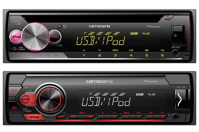 DEH-4500/MVH-3500は、通信機能を省いたスマートフォンリンク非対応のエントリーモデル。USB/iPhone/iPodの接続に対応したフロントUSB入力端子を備え、操作にはリング形状の大型キーを採用する。LEDはDEH-4500が22万色のマルチカラー、MVH-3500がレッドカラーとなる。