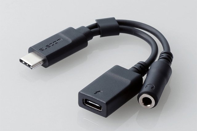 エレコムは、スマートフォンなどのUSB Type-C端子を、ステレオミニ端子と充電用USB Type-C端子に分岐できる変換アダプタ「AD-C35CBK」を10月中旬から発売する。価格は1,770円(税抜)。