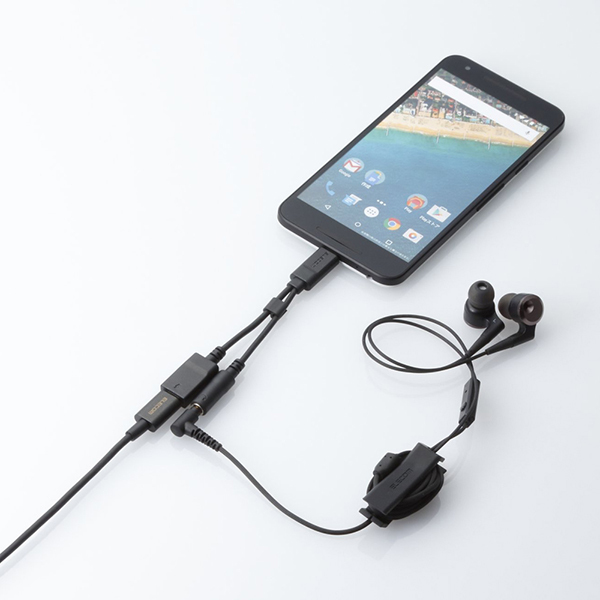 エレコム、スマホなどのUSB Type-C端子をステレオミニ/充電用USBに分岐できる変換アダプタ