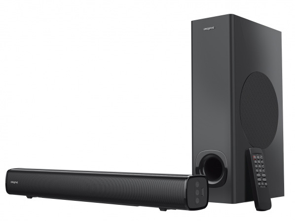クリエイティブメディアは、PCモニターやテレビの下に配置するコンパクトなサウンドバー「Stage Air」を10月中旬より発売。また、サブウーファーが付属する2.1chモデル「Stage」を近日中に発売する。