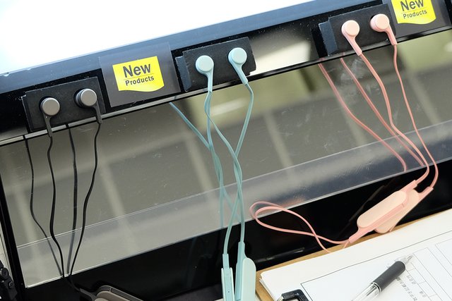 またORBブランドのブースは同社の誇るケーブルマイスターの実演コーナーを3点構え、工房のような様相を呈していた。クラウドファンディングサイト「GREEN FUNDING」も、オーディオ関連プロジェクトを展示。earsopenの新骨伝導Bluetoothイヤホン「earsopen WR-5A HK-1002」や、ノイズキャンセリング機能のヘッドホンとパーティションが一体化した「WEAR SPACE」、フラットパネル形状のスピーカー「TOUGH BEAT」など個性的な製品が注目を集めた。