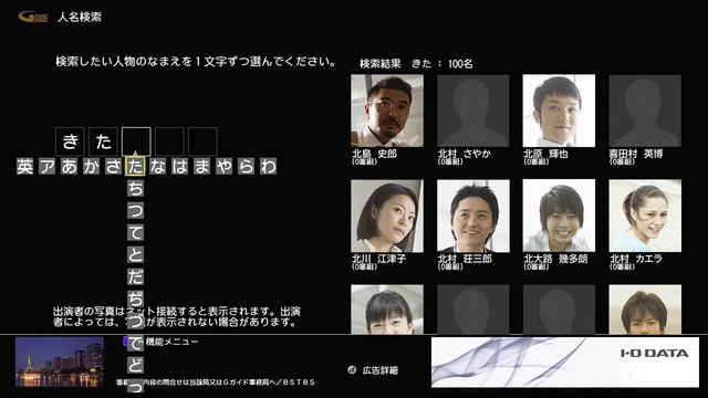 番組表には、HTML 5ベースで制作されたGガイドの最新版「GガイドHTML」を採用。番組表から直接予約録画を行える他、キーワードやジャンルを用いて行える番組検索では、番組出演者の別の出演作品など関連情報も表示される。