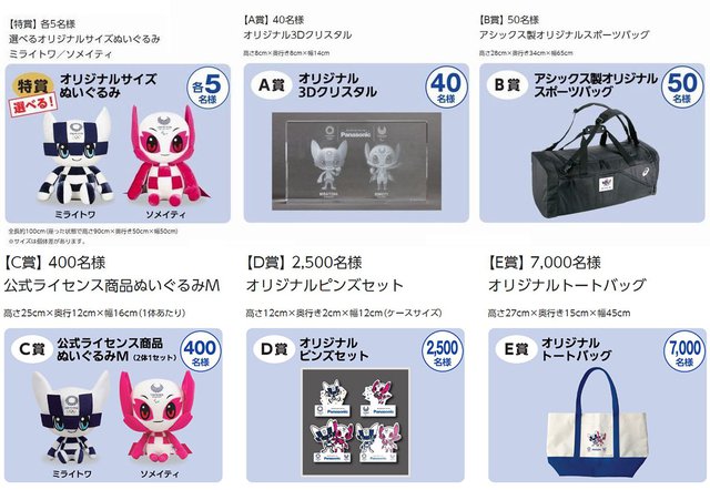 本キャンペーンの期間内に、4K有機ELビエラ「FZ1000/FZ950/EZ1000/EZ950」シリーズおよび、4K液晶ビエラ「EX850/FX800/FX780/FX750/FX600」シリーズを購入、応募することで、合計10,000名に抽選で東京2020マスコット限定グッズがプレゼントされる。