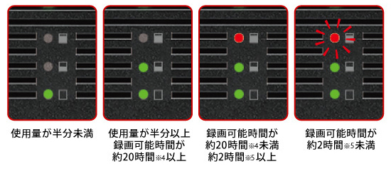 ハードディスク使用量をLEDでお知らせする「使用量メーター」を搭載したテレビ・レコーダー向け外付けHDD。使用量メーターにより録画可能時間の目安が一目でわかり、容量不足による録画の失敗を防ぐというもの。