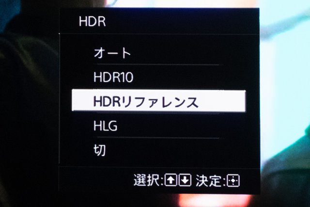 『スパイダーマン:ホームカミング』でこの機能を試してみたが、明るさのピークに近いネオンの看板の部分で顕著な差がみられた。HDR10では白く飛んでいるようで、わずかに薄いブルーの色が付いていることがわかるくらいであったが、HDRリファレンスモードでは青が濃くなり、その中に描かれていた女性の色まではっきりとわかる。このHDRリファレンスモードは、HDRのオート設定では選択されず、ユーザーが個別に設定する必要があるとのこと。