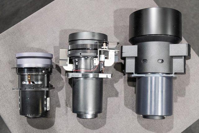 ARC-Fレンズは、4Kデジタルシネマ、フローティングフォーカスシステム、大口径エクストラ低分散ガラスなどの技術を用いた15群/18枚のガラスレンズから構成されたもの。フローティングフォーカスレンズは、5年ほど前である1000番台の機種から用いられているものだが、「最新技術ではないが、とてもいい技術」として現在まで採用してきているという。また、レンズは短焦点レンズ「VPLL-Z7008(約150万円/税抜)」に交換することも可能。
