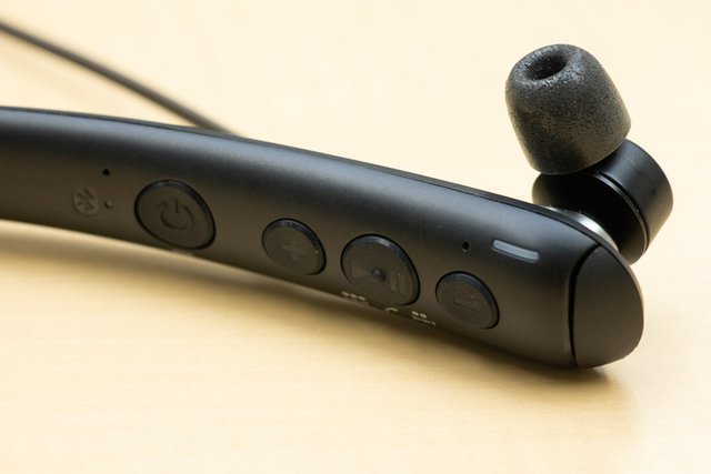 操作ボタンはネックバンドの左内側に配置。電源ボタン、音楽再生や通話などの操作を行うコントロールボタン、音量ボタンを装備している。