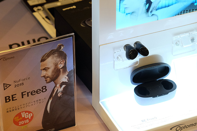 さらに、Optoma/NuForceブランドの「BE Free」シリーズなど完全ワイヤレスイヤホン/Bluetoothイヤホン製品を中心に、イヤホン「HEM」シリーズ、SpinFitのイヤーピースなど同社が取り扱う多数ブランドのラインナップを試聴できるようにしていた。