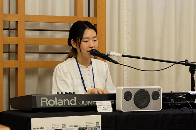 またこのデモの際には、シンガーソングライター missatoさんがゲストとして登場。ピアノ弾き語りスタイルで実際にその場で演奏し、その音がIA-BT7を通して鳴らされた。本人もIA-BT7を使用しており、その音の印象は「非常にバランスが良く、聴きやすい」という。それを土方氏が「ドンシャリといった傾向が一切なく、高音から低音までワイドレンジに再生される」と引き継いだ。