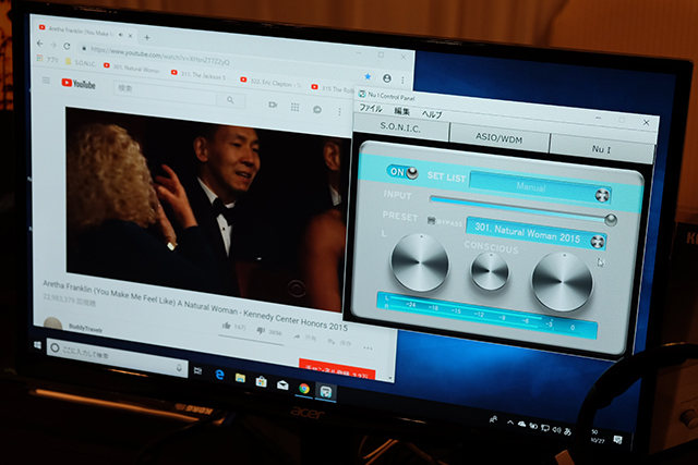 また、YouTubeのサウンドをリアルタイム変換にDSDクオリティにリマスタリングするというオノ セイゲン氏プロデュースの「S.O.N.I.C.リマスタリング・テクノロジー」も体験することができた。
