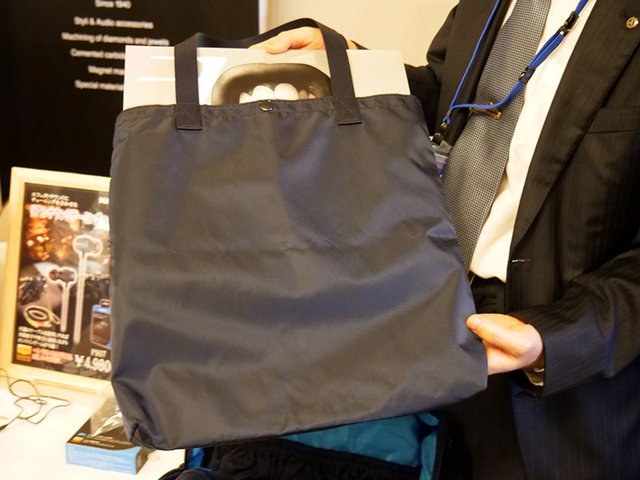 GREEN FUNDINGは、10月はじめに発表して話題となった、パナソニックが開発したウェアラブル端末「WEAR SPACE」を展示している。