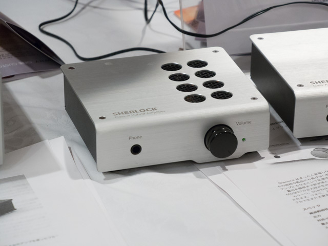 Jaben Japanは、PhatLabの真空管ヘッドホンアンプ「Sherlock」を初出展。3万5千円前後の小型の筐体ながら純A級のパワフルな駆動力を備え、2台組み合わせることでバランスアンプとして使用することもできる。