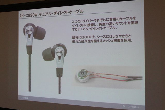 デノンは、27日より開幕したフジヤエービック主催「秋のヘッドホン祭 2018」にて、昨日発表されたBluetoothイヤホン「AH-C820W」(関連ニュース)の発表会を開催した。
