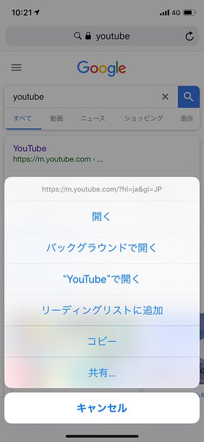これを回避するためには、検索したあとのURL「m.youtube.com」部分を長押しして、「バックグラウンドで開く」を選ぼう。するとブラウザ内でYouTubeサービスを利用でき、ここから登録することで、アップルを経由せず、直接YouTubeのプレミアムサービスを登録できる。