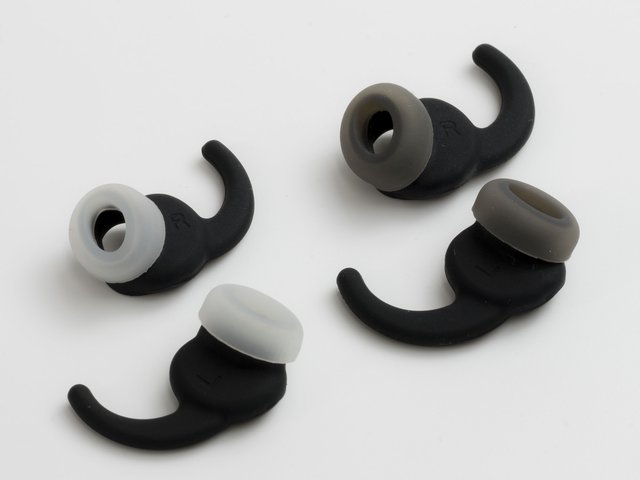 イヤーチップのET-A1は、耳穴に接する部分と耳介に接する部分の弾力性を異なる硬度にすることで、フィット感および密着感の向上を図った。開口部は楕円形状としたほか、外耳通の密着性の向上により低音域の損失を抑制している。
