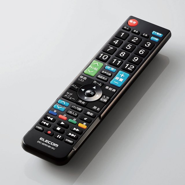 エレコムは、テレビとレコーダーの世代やメーカーが異なっても1台で操作できる “レコーダーマルチリモコン” 「ERC-BDR01BK-MU」を12月中旬より発売する。価格は4,240円(税抜)。